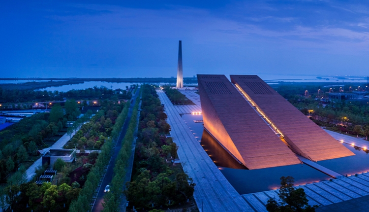 渡江戰(zhàn)役紀(jì)念館位于濱湖新區(qū)云谷路299號(hào),占地面積22萬平方米,由南向北依次為勝利塔、勝利廣場、總前委群雕和紀(jì)念館主館、解放廣場。勝利塔高99米,“九九八十一”代表著“八一”軍隊(duì)的勝利,塔體從空中俯看呈五角星狀。