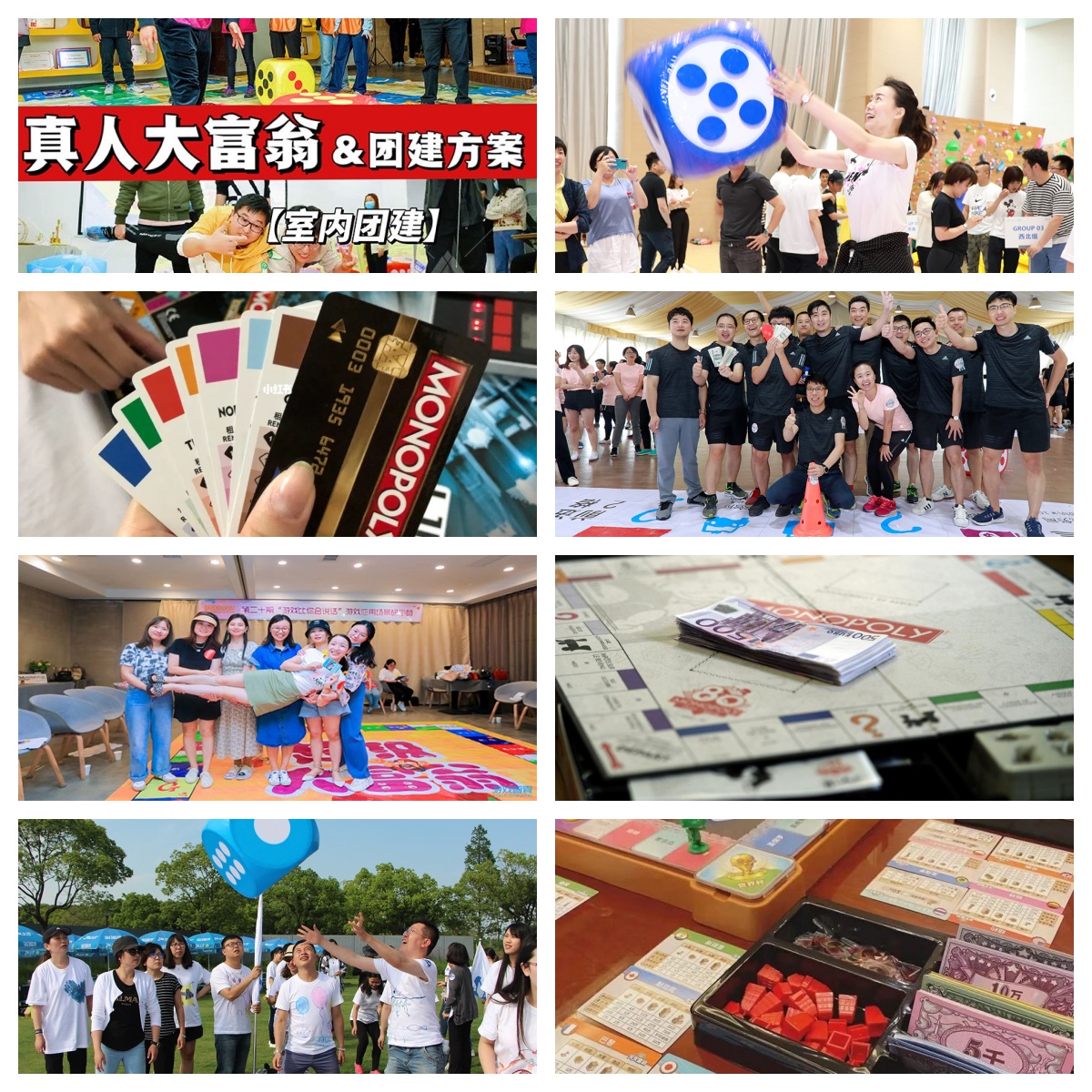 將大富翁與團建相結合,保留大富翁的趣味與策略性,加深團建體驗屬性,形成了真人大富翁團建項目;在活動中,不同的小組要模擬不同的大富翁角色,采用超大尺寸的地圖和骰子,全程圍繞大富翁地圖進行探索尋寶,里面加入了市場、證券、股票等活動元素,讓我們不僅僅在體驗團建游戲,通過完成真人大富翁地圖、團隊挑戰(zhàn)、智慧闖關賺取錢幣,發(fā)揮團隊智慧,最終完成奪冠的目標,還能在團建游戲中提升團隊凝聚力和執(zhí)行力;。