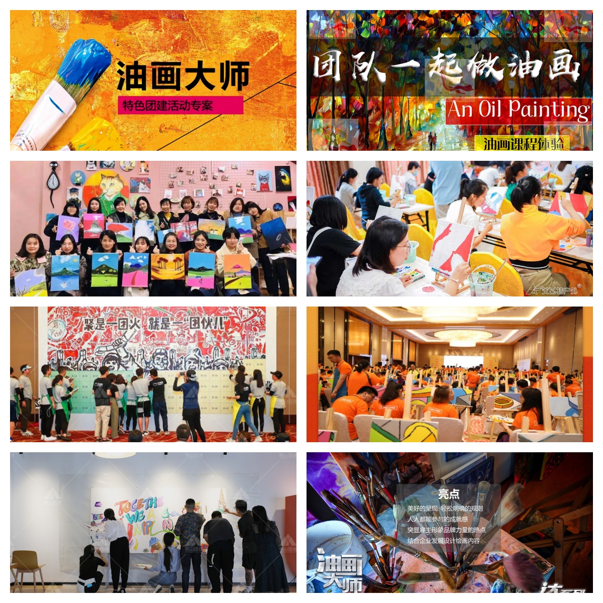 文化共創(chuàng):通過(guò)團(tuán)隊(duì)的努力完成一幅具有企業(yè)文化代表意義的油畫(huà),用視覺(jué)的感觀直接呈現(xiàn)在面前。
